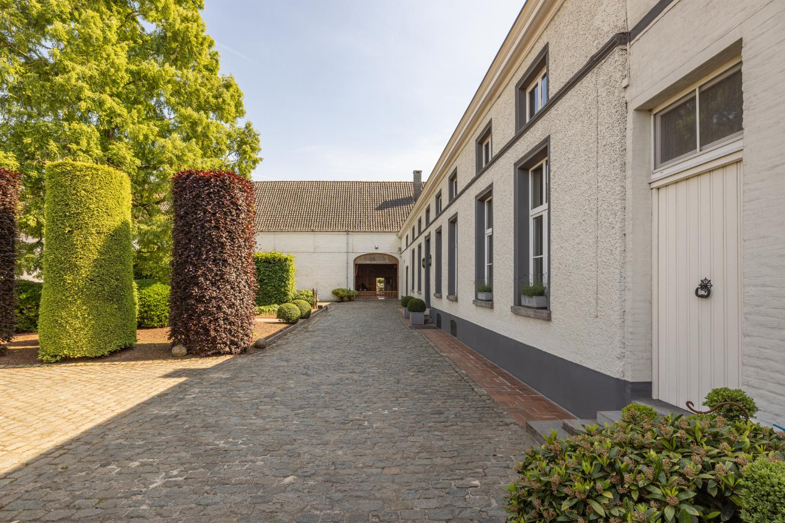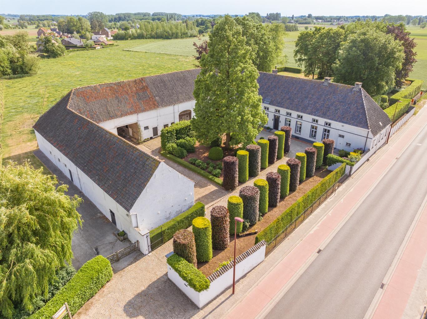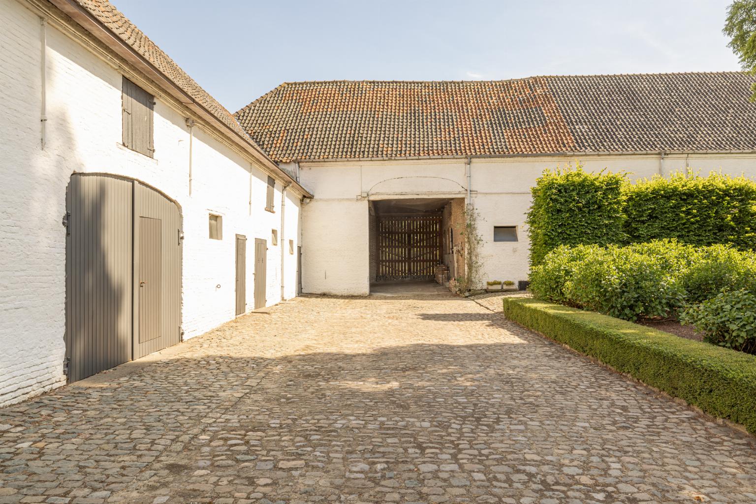 Imposante historische hoeve gebouwd omstreeks 1875. Statige robuuste gebouwen rondom een deels gekasseid binnenerf.