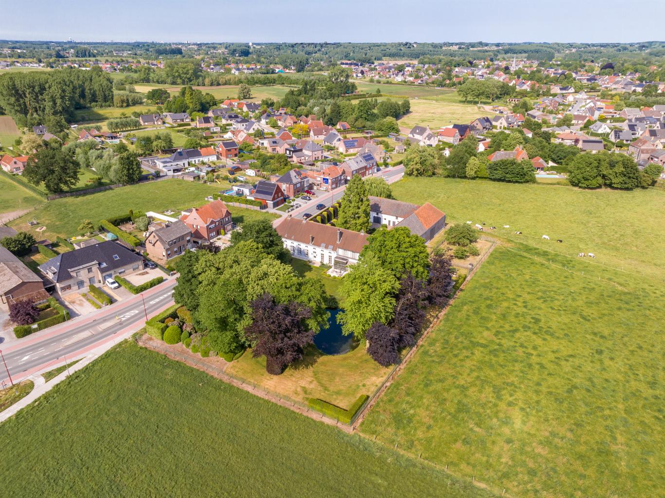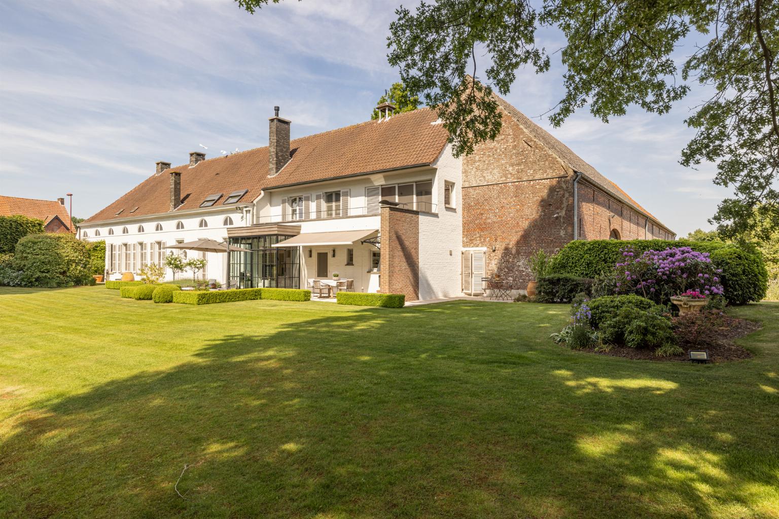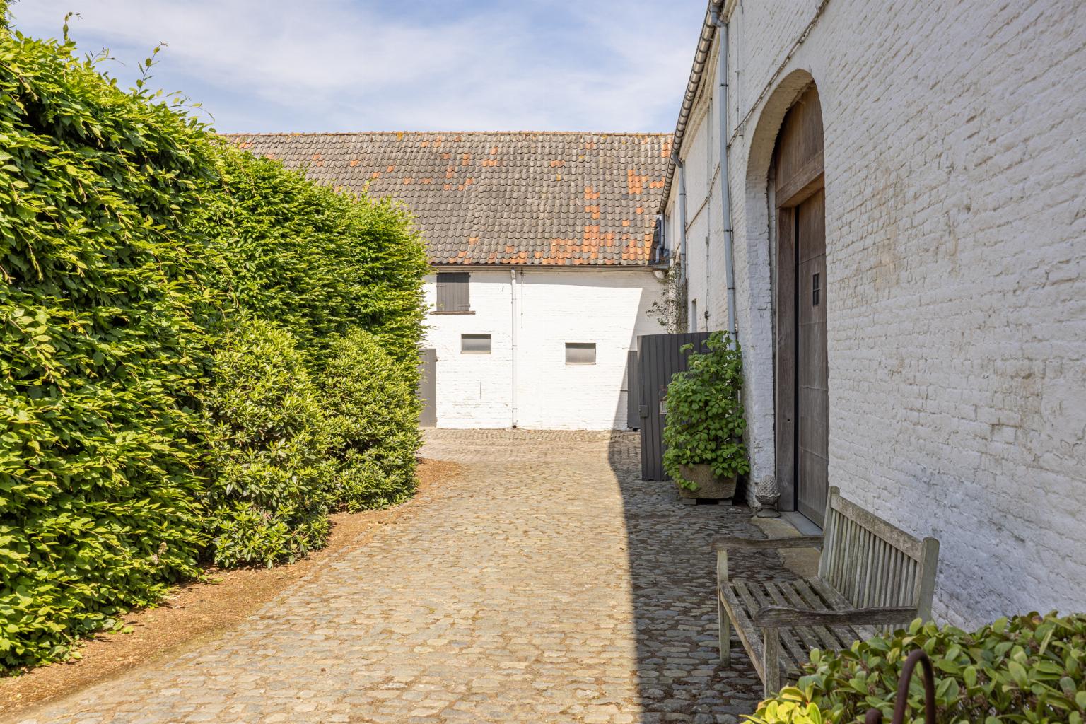Imposante historische hoeve gebouwd omstreeks 1875. Statige robuuste gebouwen rondom een deels gekasseid binnenerf.