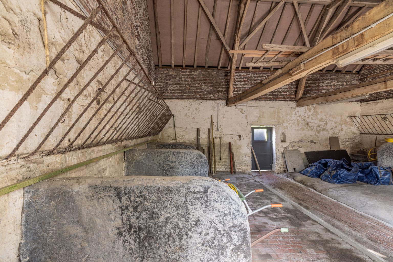 Voormalige schuur en stallingen met authentieke erfgoedwaarde, zowel binnen als buiten. Robuust en in goede staat. Deze gebouwen zijn bouwfysisch geschikt om te worden omgevormd richting zachte commerciële functies, bijvoorbeeld kantoor, horeca, vakantielogies enzovoort.