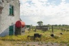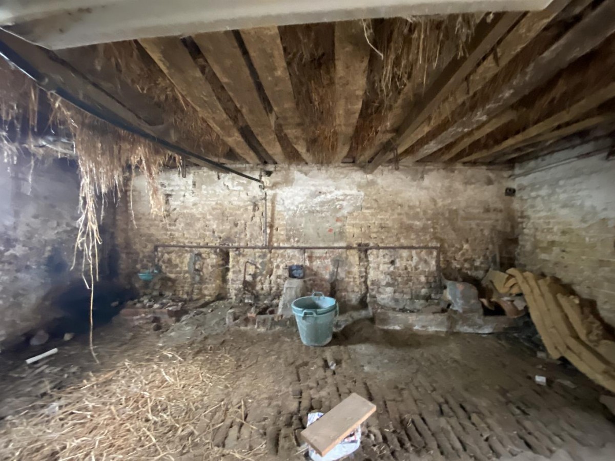 Schuur. Ten westen van het erf gelegen volume van gele verankerde baksteen onder een pannen zadeldak. Op de kaart van Ferraris (1770-1778) wordt reeds een volume weergegeven. Verankerde gele baksteenbouw onder een zadeldak bedekt met Vlaamse pannen.