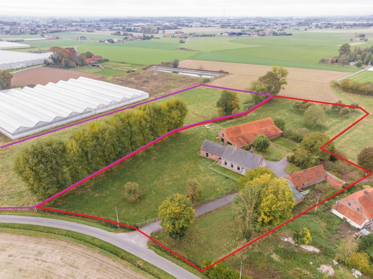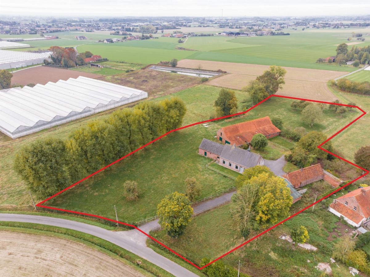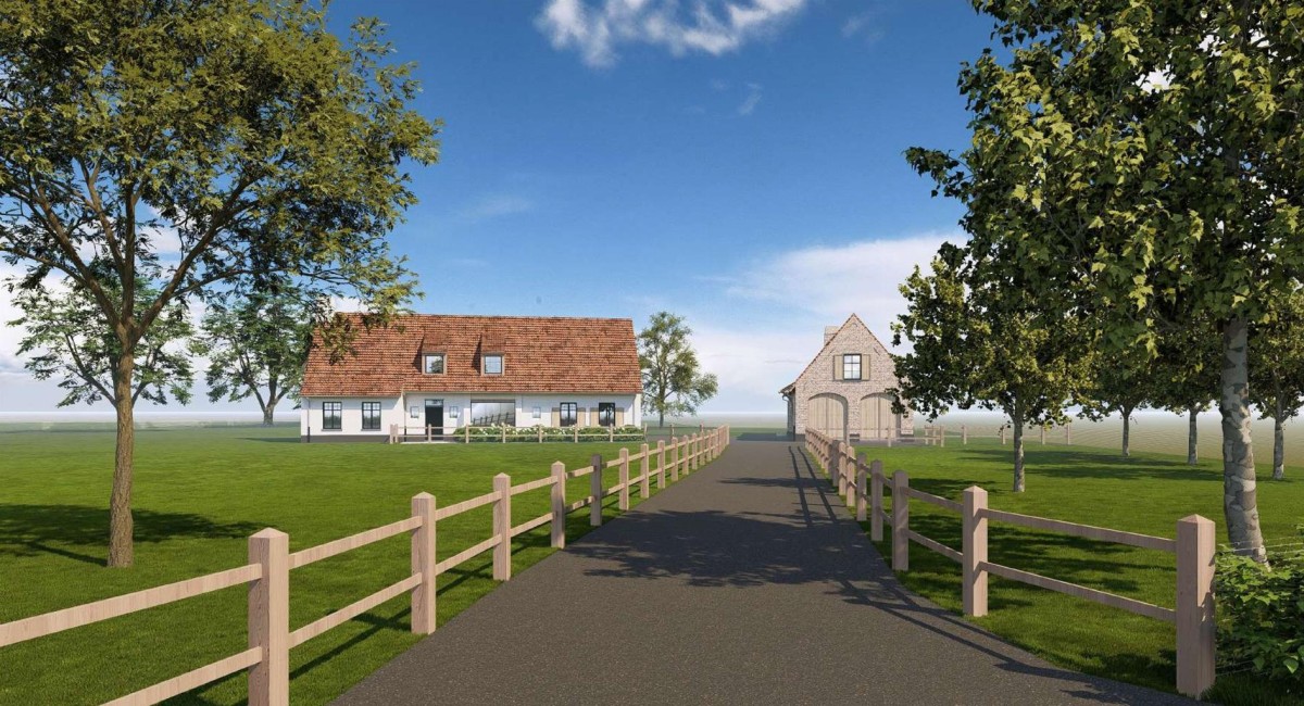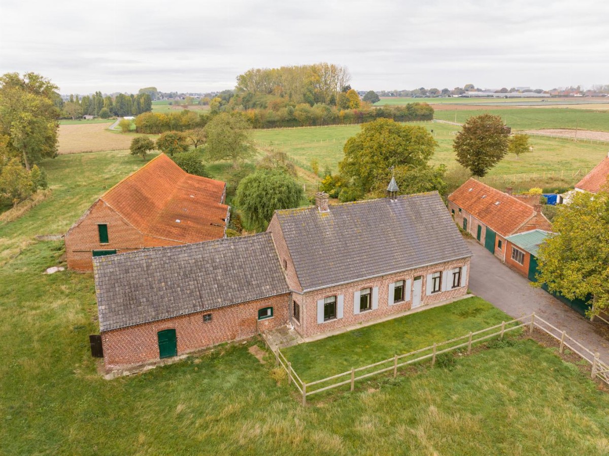 Via een private dreef van 50 meter komt u terecht bij deze authentieke hoeve. Deze eigendom wordt te koop aangeboden op een oppervlakte van 1 ha 17 a met mogelijkheid naar uitbreiding tot 2 ha 35 a.