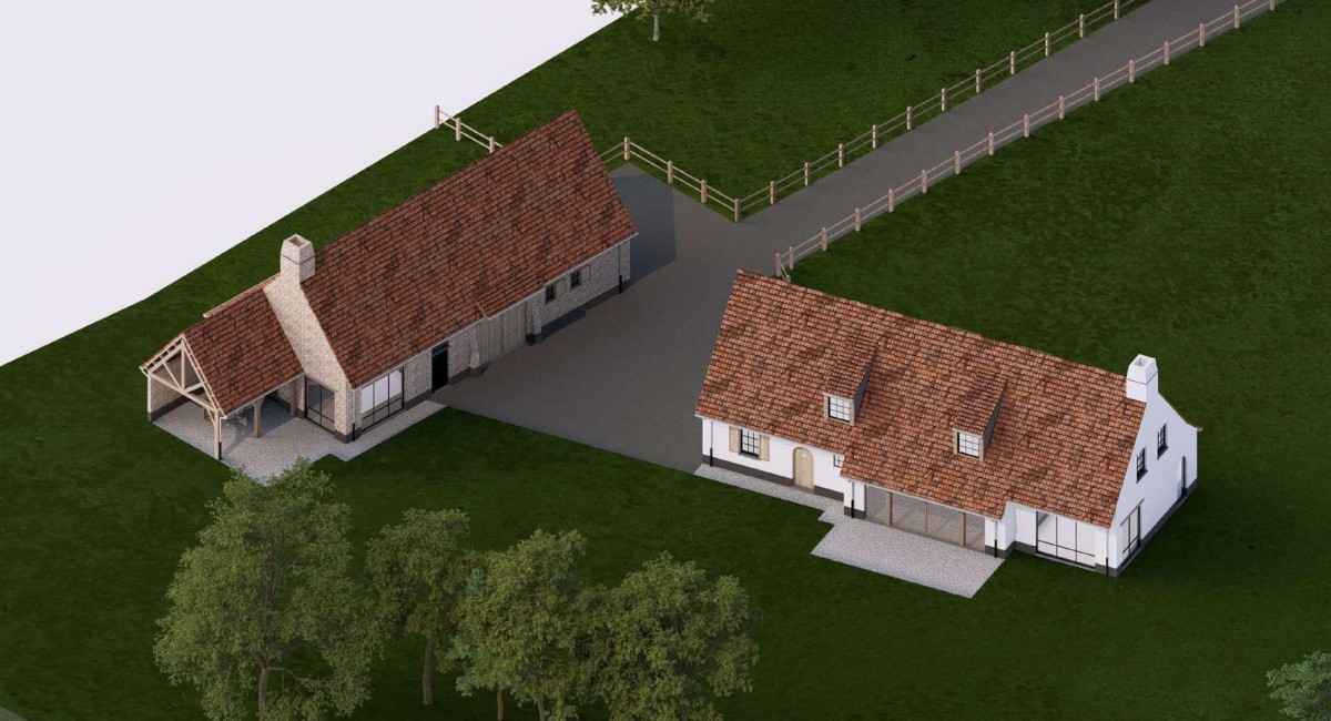 Recent werd er een vergunning afgeleverd voor een functiewijziging alsook sloop en heropbouw van de woning (992 m³) en een woningbijgebouw (919 m³).