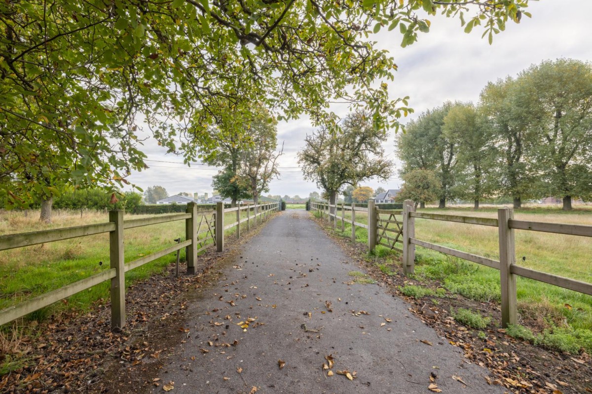Via een private dreef van 50 meter komt u terecht bij deze authentieke hoeve. Deze eigendom wordt te koop aangeboden op een oppervlakte van 1 ha 17 a met mogelijkheid naar uitbreiding tot 2 ha 35 a.